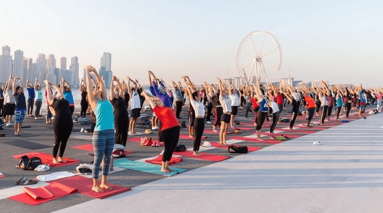 اسکائی ڈیو دبئی میں 30 منٹ کی کلاس میں 6000 کے قریب افراد شامل تھے جنہوں نے گنیز ورلڈ ریکارڈ کی کوشش میں شرکت کے لئے اندراج کیا تھا۔ مشرق وسطی میں منعقدہ یہ اپنی نوعیت کا سب سے بڑا ایونٹ بن گیا ہے اور دبئی فٹنس چیلنج کی حمایت میں تھا۔