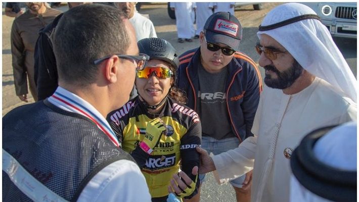 شیخ محمد بن راشد گرے ہوئے سائیکل سوار کی مدد کے لئے آئے