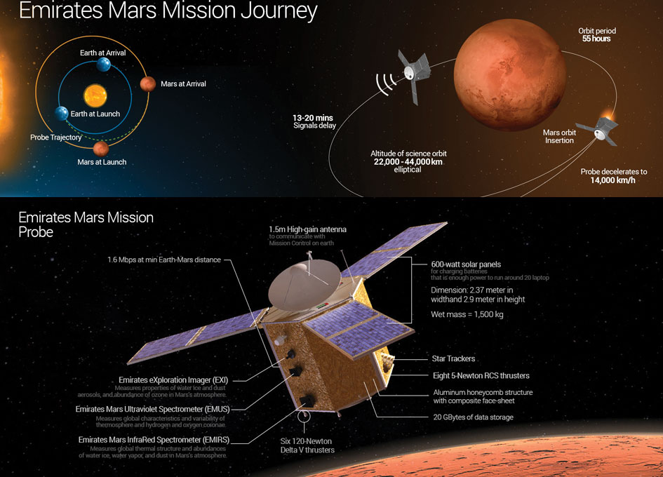 اس تحقیقات کا آغاز جاپان کے تنیگشیما خلائی مرکز سے کیا جائے گا اور توقع ہے کہ وہ متحدہ عرب امارات کے اتحاد کی 50 ویں سالگرہ کے موقع پر 2021 کی پہلی سہ ماہی میں مریخ کے مدار میں پہنچ جائے گی۔