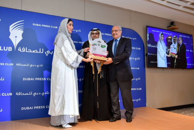 دبئی میڈیا کونسل کی وائس چیئرمین اور منیجنگ ڈائریکٹر اور دبئی پریس کلب کی صدر مونا المری نے سعودی عرب میں غیر ملکی میڈیا کے جنرل سپروائزر ڈاکٹر خالد بن عبد القادر الغامدی سے ‘کیپٹل آف عرب میڈیا 2020’ کے لئے ٹرافی وصول کی۔
